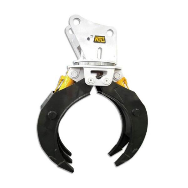 抓钳器是属于挖掘机一种工作装置,是通过液压能或电能等驱动其的爪子进行张闭,从而可以对物件进行搬运与抓取作业。