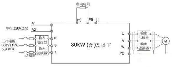 典型的接线图如下,不同的变频器有微小差别。