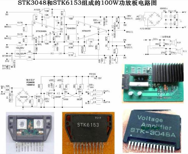 STK3048是前级电压放大集成电路;STK6153是后级电流放大集成电路。
