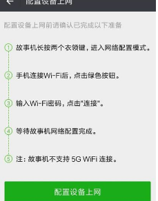 4、确认连接后,等待产品自动连接语音提示:成功后语音提示“连上网了”,同时会退出配对连接模式;不成功语音提示“网络配置不成功”,有可能因为操作时间过长或网络问题导致,请重新操作一遍。【回答】