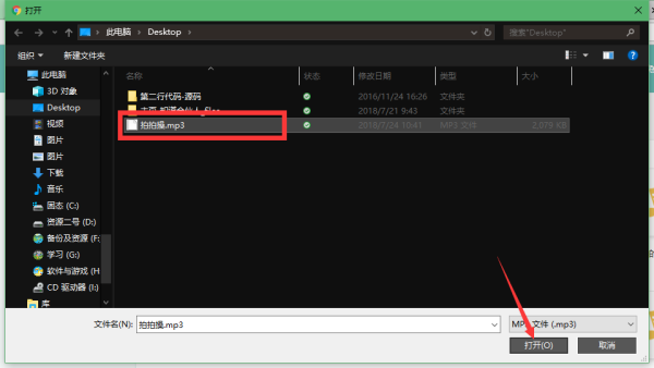 3.选中需要上传的歌曲,点击打开(需要上传多首歌曲时可以按住左下角Ctrl键,鼠标选中要上传的多首歌曲);