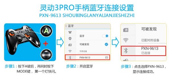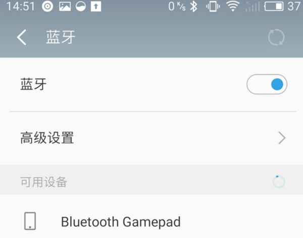 2、然后,选择Android键并长按;然后灯刀将闪烁三次每秒。打开Android手机蓝牙,通过蓝牙连接设备与手柄。如下图所示: