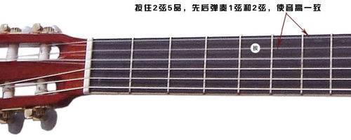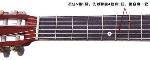 按住5弦5品,弹4弦和5弦,直到音高度一样