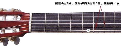 按住6弦5品,弹5弦和6弦,直到音高度一样