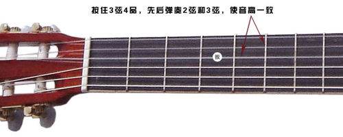按住3弦4品,弹2弦和3弦,直到声音高度一样