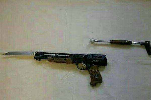 这款手枪的研制时间超过了15年。它有三个枪管,分别用于发射信号弹、霰弹和普通子弹。枪托上安装有利斧,航天员可用它在原始森林中开辟出小道。首先,它是-个典型的求生工具,航天员落地后如果不幸置身荒野,这款手枪将会帮他解决发射信号、狩猎野兽和自卫防身等诸多问题。此外,具有丰富求生经验的航天员还可以利用子弹的发射药和底火生火。