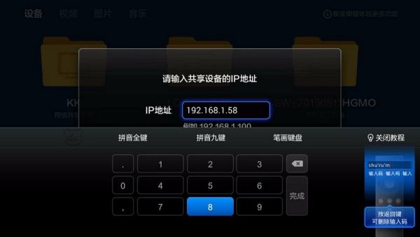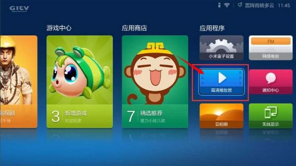 打开小米盒子mini版主界面——高清播放器——添加设备