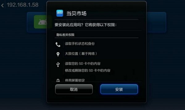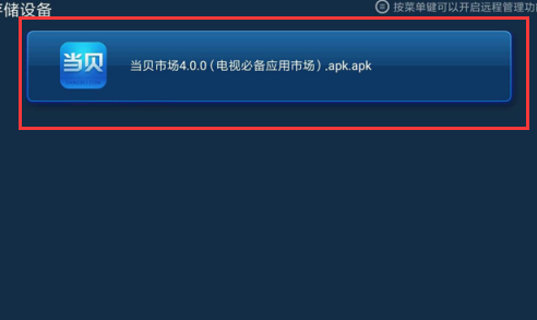 打开共享的文件夹,找到当贝应用市场apk,点击安装即可
