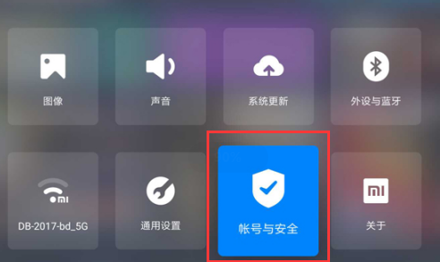 3、打开小米盒,按遥控器的“设置”键,然后单击“帐户和安全”,如下图所示;
