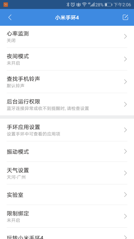 小米手环设置界面