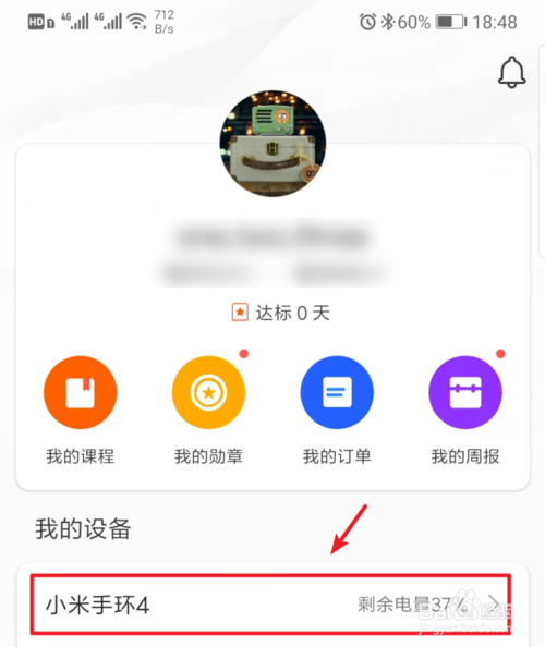点击后,选择页面的小米手环4设备进入设置。