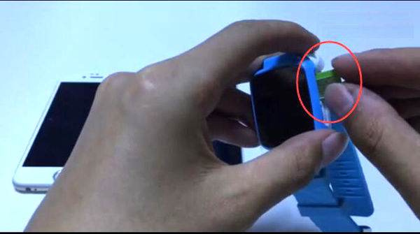 1、将SIM卡装入手表右侧面的卡槽,注意为正面朝上,卡可以是已经开通流量的SIM卡。移动联通均可。
