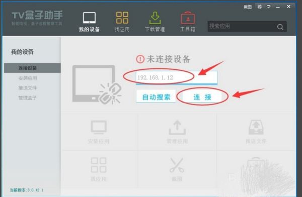 步骤六:打开软件,输入盒子的ip地址,并连接。
