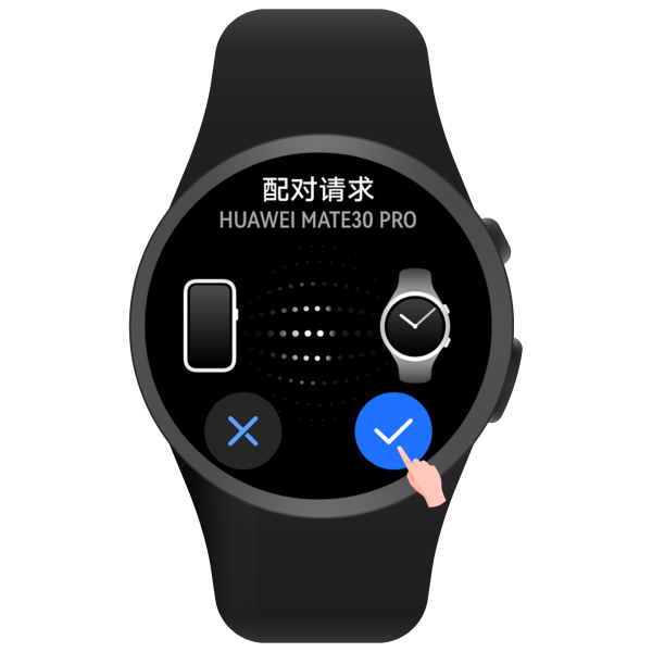 c.当穿戴设备屏幕出现配对请求时,点击√,同时在手机端根据界面提示完成穿戴设备和手机配对。