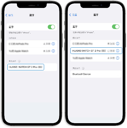 a.在手机上打开设置 > 蓝牙,并在设备列表中选择您的设备进行连接,当穿戴设备屏幕上出现配对请求时,点击√。