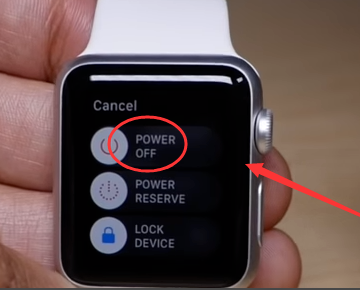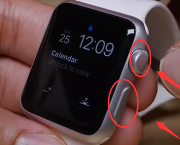 4、最后同时按住旋钮键与电源键不松,几秒后iwatch就会无提示的强制重启了,如下图所示,问题就解决了。