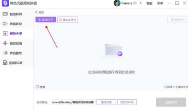 2.在上方点击“添加文件”,导入需要去除水印的视频文件。