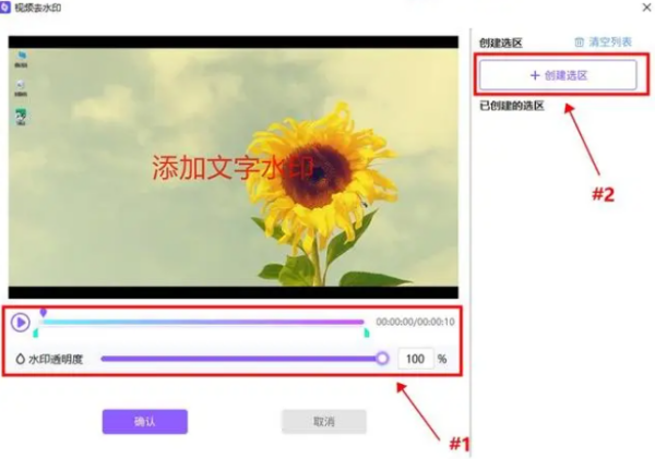 4.在视频中设置水印位置,除此之外还可以设置水印透明度,完成设置后点击“确认”。