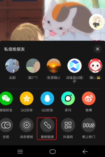 点击短视频APP中的分享按钮,在弹出的分享框中,点击「复制链接」按钮。