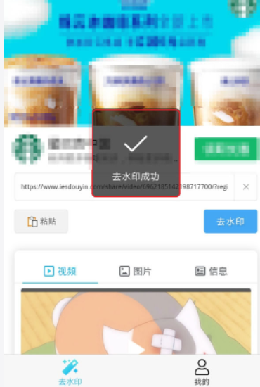 7、接着等待一会儿,小程序就会帮我们将视频中的水印去掉,并弹出【去水印成功】的提示信息。