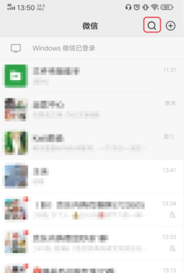 4、接着我们打开微信软件,然后找到界面右上角的【搜索】按钮,并点击它。