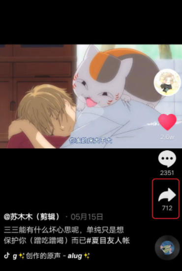 1、打开抖音软件,找到想要保存的视频,然后找到视频右侧的【分享】按钮。