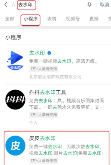 打开微信,搜索「水印君」这个小程序,这是我用过最好用的短视频去水印工具,支持抖音、快手、微视、皮皮虾等等这些平台的短视频去水印。