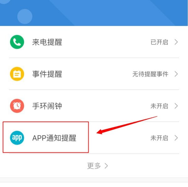 4、打开【小米手环3】后,找到【APP通知提醒】,点击进入;
