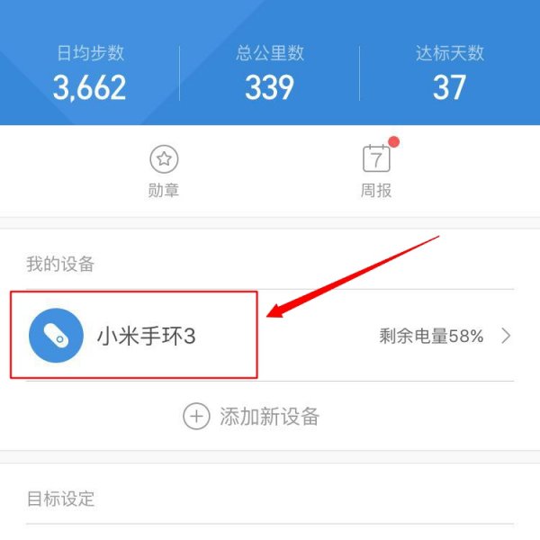 3、打开【小米运动】后,找到到【小米手环3】,点击进入;