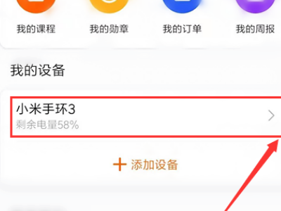 2、点击页面中部的【我的设备】,点击右侧小箭头进入我的小米手环中。