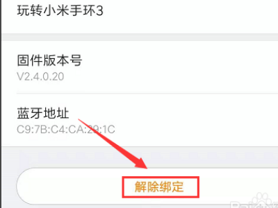 3、在我的手环中的详细页面中,找到最下面的选项【解除绑定】,这时会提示是否解除绑定,点击是就解除了手环的绑定。