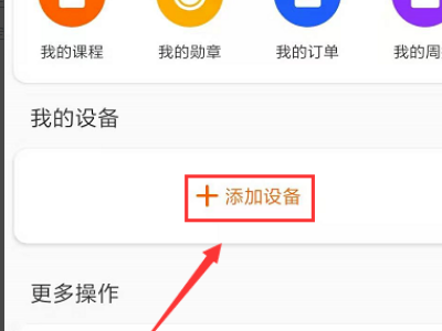 4、然后返回小米手环的主页面,在页面中部点击【添加设备】,这里重新绑定小米运动和小米手环。