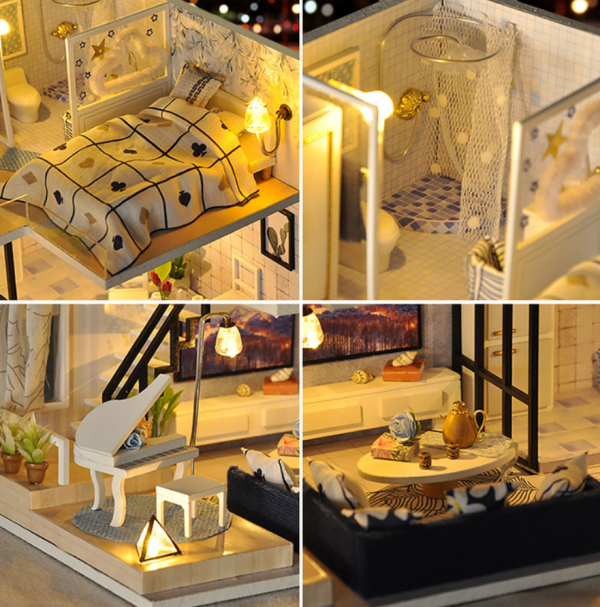 不可多得的创意礼物,自己动手拼装的迷你阁楼别墅,浪漫的LED小夜灯,还可以根据您的要求刻字定制,赠玻璃防尘罩,送ta一个专属ta的美丽小屋吧。