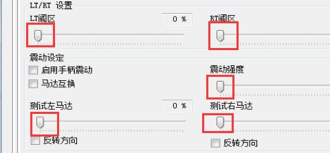 6、可在此界面通过拉动开关调节左右手柄的阀区和震动强度,如图所示。LT表示左手柄,RT表示右手柄。
