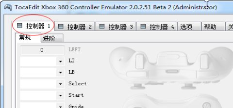 2、将手柄插入电脑USB口,点击控制器1。
