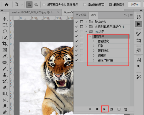 7、执行动作命令,图像就会自动执行制作漫画效果。