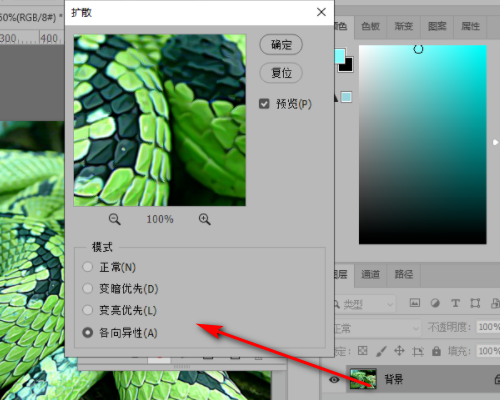 7、选择模式右侧的RGB颜色,点击后会自动勾选