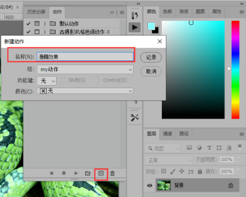 6、漫画效果的动作命令制作完成,打开新素材图像,执行动作命令。