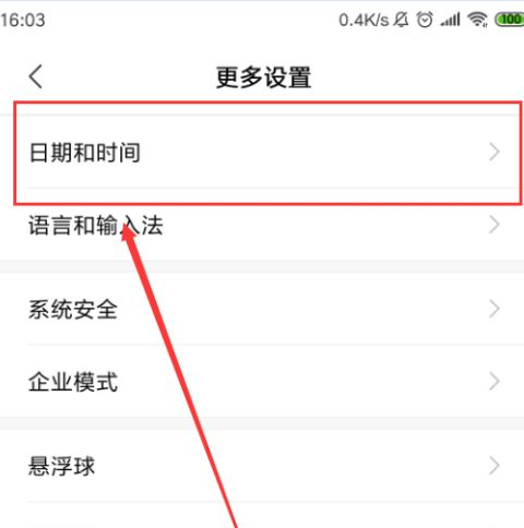 2、点击设置后找到更多设置,点击进入后点击日期和时间
