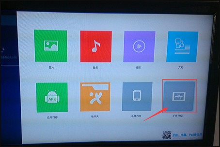 3、将U盘连接盒子的USB接口,打开飞鸽传书后选择「扩展存储」。