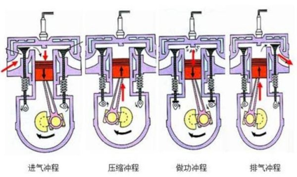 四冲程汽油发动机的工作过程,是由进气、压缩、作功和排气四个冲程完成的,所以它叫做四冲程发动机,它的工作过程如下: