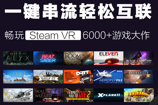YVR支持一键串流Steam,串流方法也很简单,可畅享Steam海量的游戏。