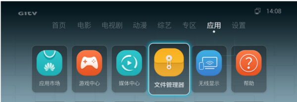 5、如果没有弹窗,就需要通过系统中自带的文件管理器软件查看U盘(查看U盘的不一定是文件管理,还有其它类似媒体播放器都可以,并不固定,但只要有USB接口,必然有查看U盘的应用)