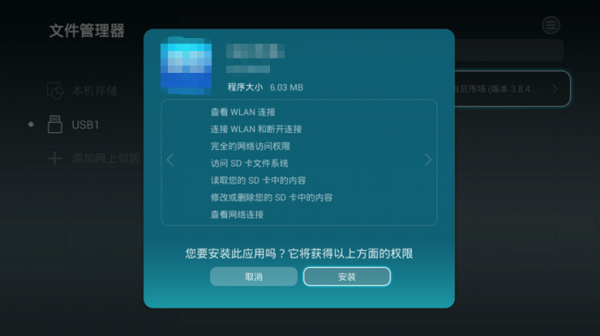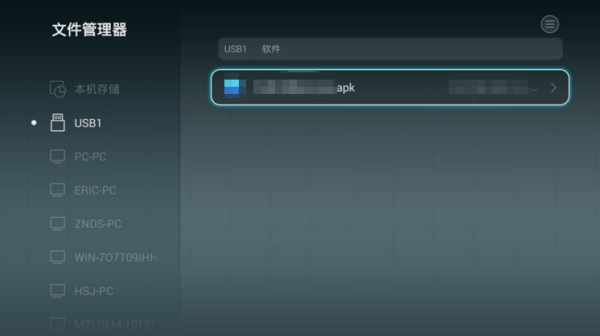6、找到直播软件的apk安装包,控制遥控器选择并确认开始安装,安装完成之后返回首页中的“应用(或者应用中心)”就可以找到已安装的软件,系统自带的应用软件这里也可以看到,打开就可以使用。